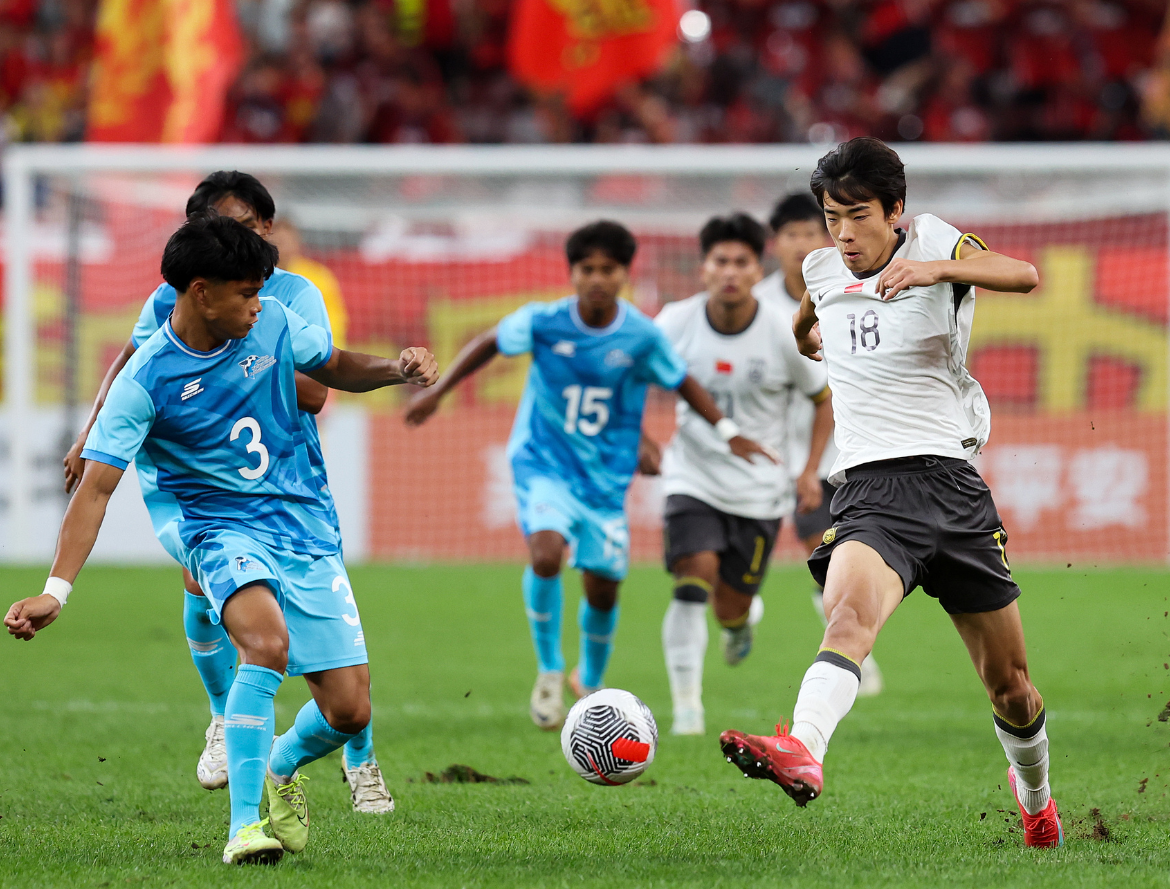 由于双方实力差距比较大,国足U23此战对首发阵容进行了多处调整,在433的阵型中,让于金永镇守龙门,鲍世蒙、彭啸、刘浩帆和李新翔四人构筑后防,毛伟杰、陈哲宣和蒯纪闻在中场一字排开,锋线三叉戟则是拜合拉木、向余望和朱鹏宇。